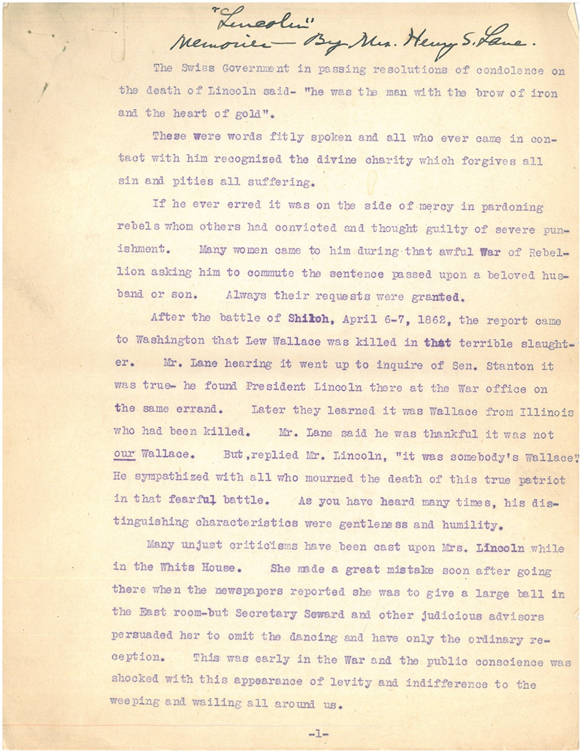 There are so many stories about Abraham Lincoln that it’s hard to tell what’s truth and what’s fiction. But one story that seems to bear truth is one retold by Joanna Lane, the wife of former Senator Henry Lane of Kansas.